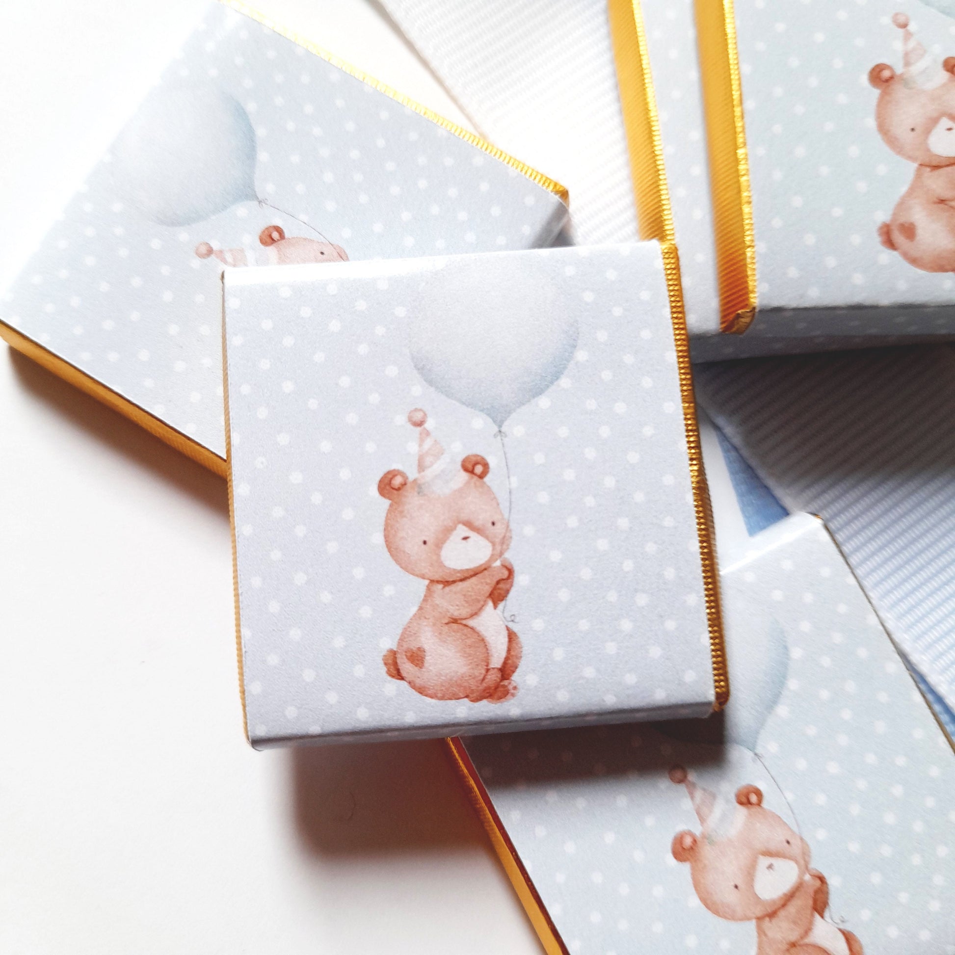 Make your child’s milestone truly memorable with these Baby Bear 1st Birthday Chocolate Favours. Featuring a delightful bear design and presented in elegant gold foil with high-quality glossy paper, each chocolate adds a sweet, charming detail to your celebration.