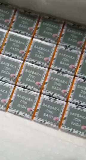 Each pack contains 25 premium chocolates crafted by a leading UK chocolatier using Fairtrade chocolate. Every square measures approximately 3 cm × 3 cm (1.5 inches) and weighs around 5 g. For inclusivity and peace of mind, these treats are egg‑free, gluten‑free, alcohol‑free, and palm‑oil free. Personalise the front of each chocolate with your chosen wording to create charming and memorable party favours or sweet table highlights.