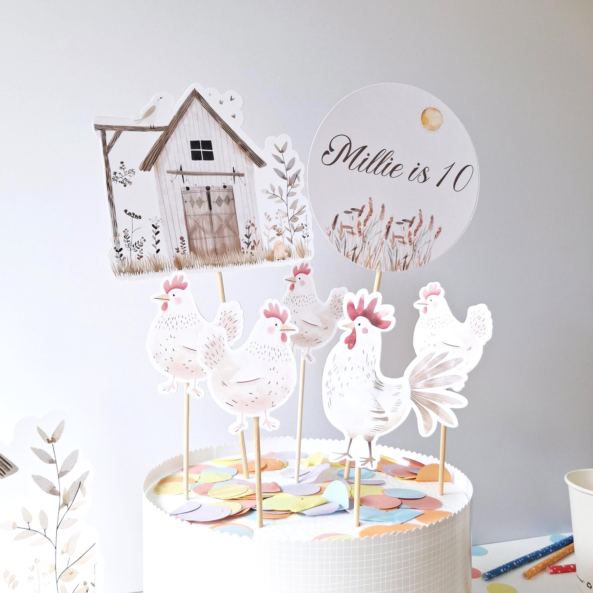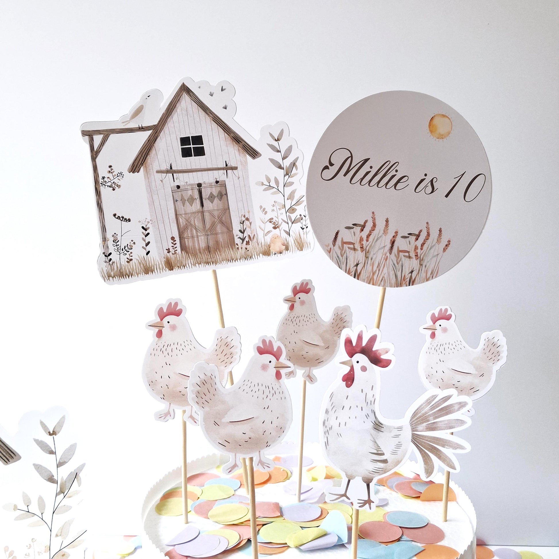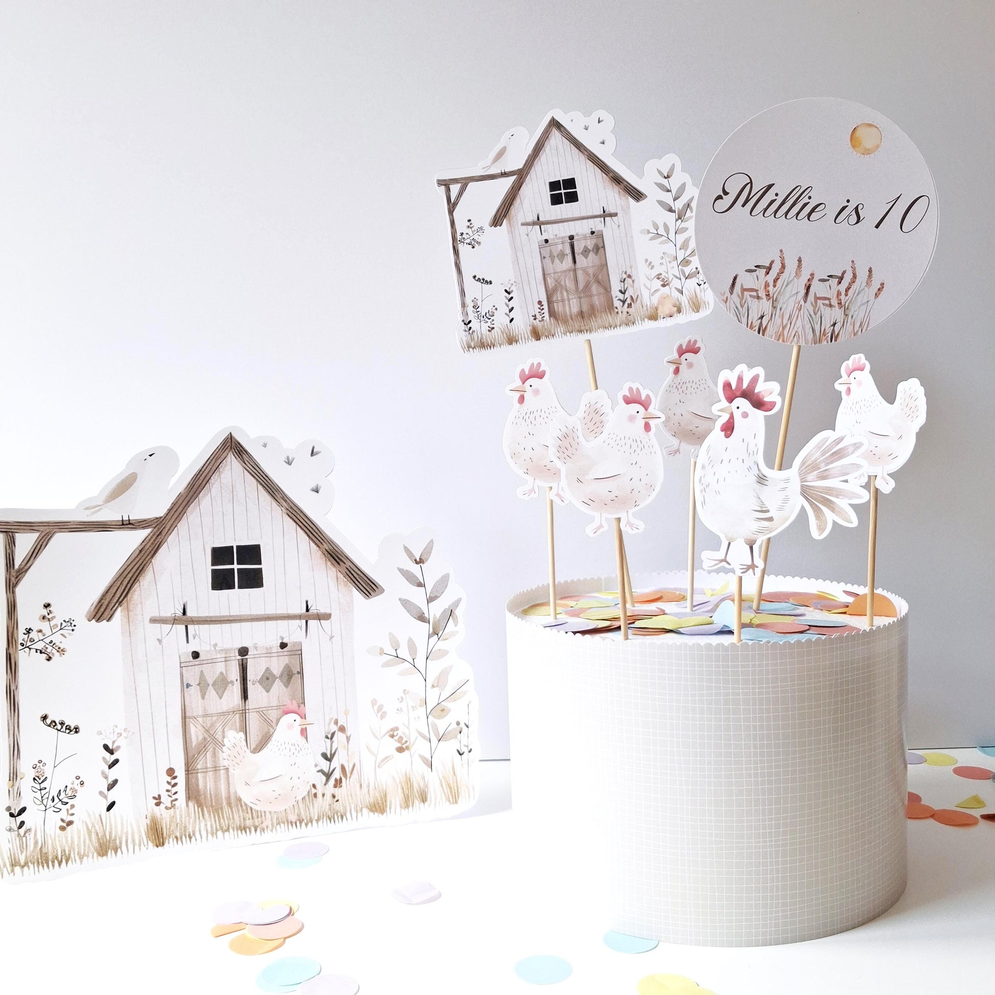 Personalised Farm Cake Topper Set – Barn and Chickens
