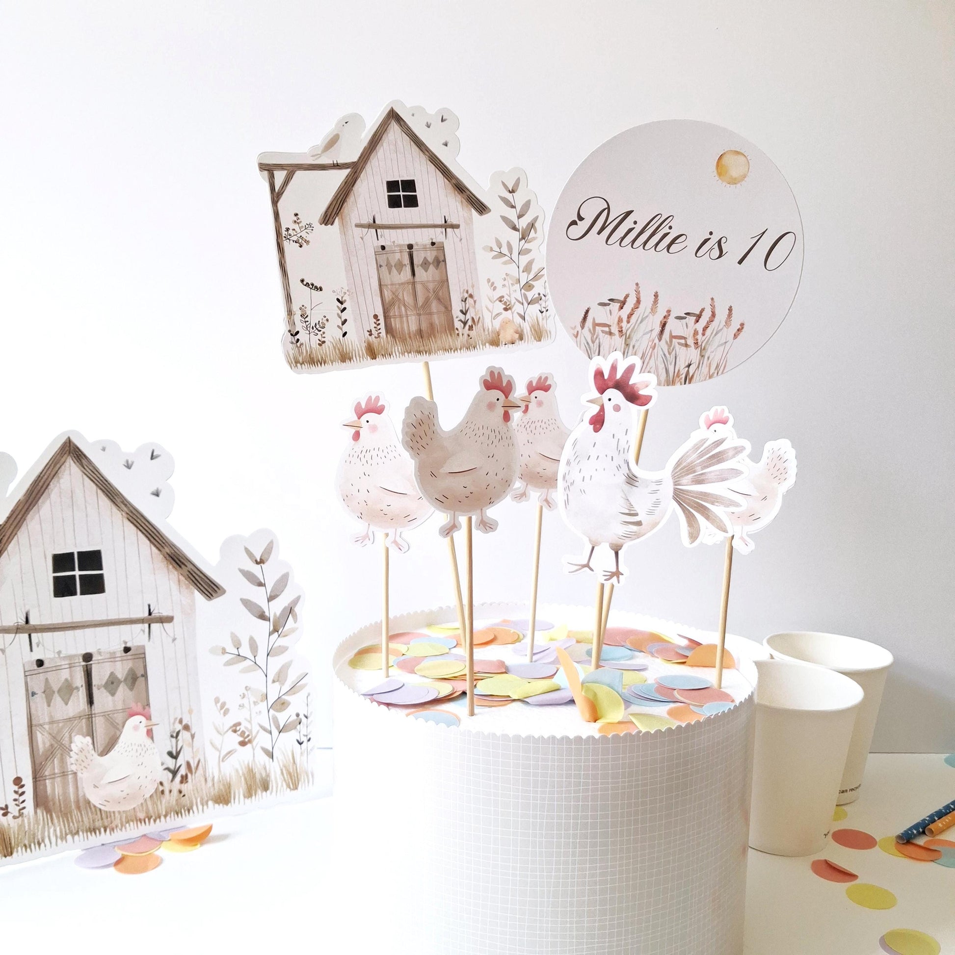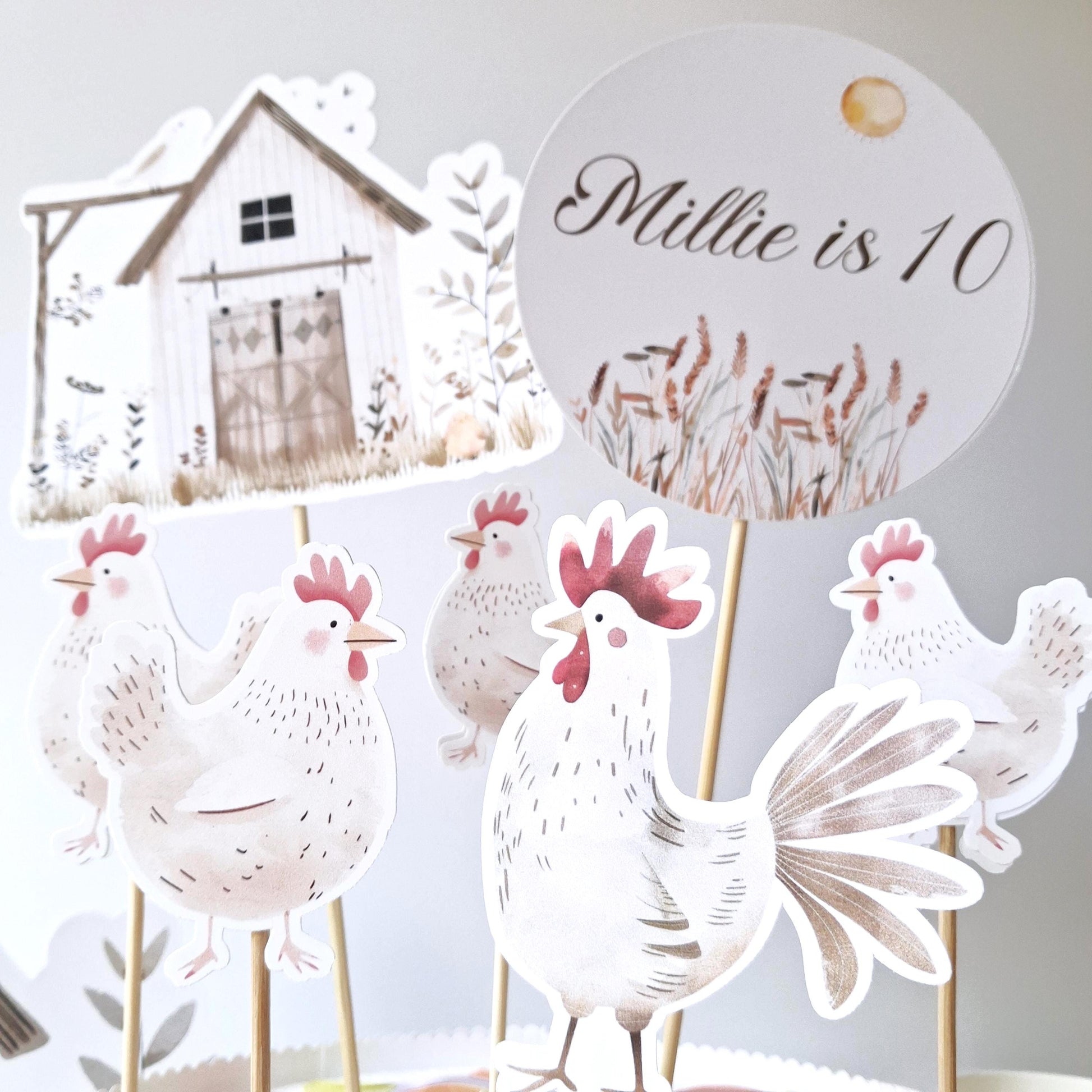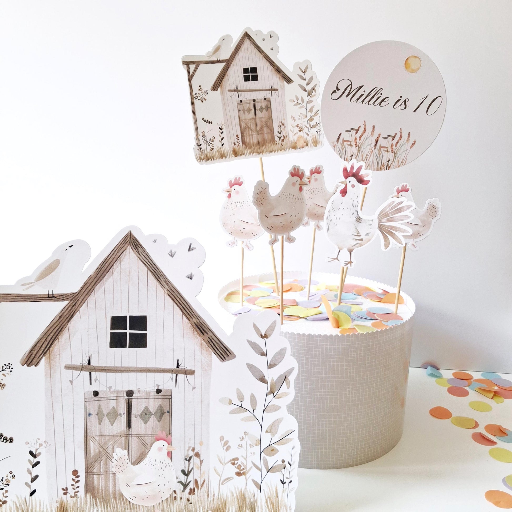 Personalised Farm Cake Topper Set – Barn and Chickens