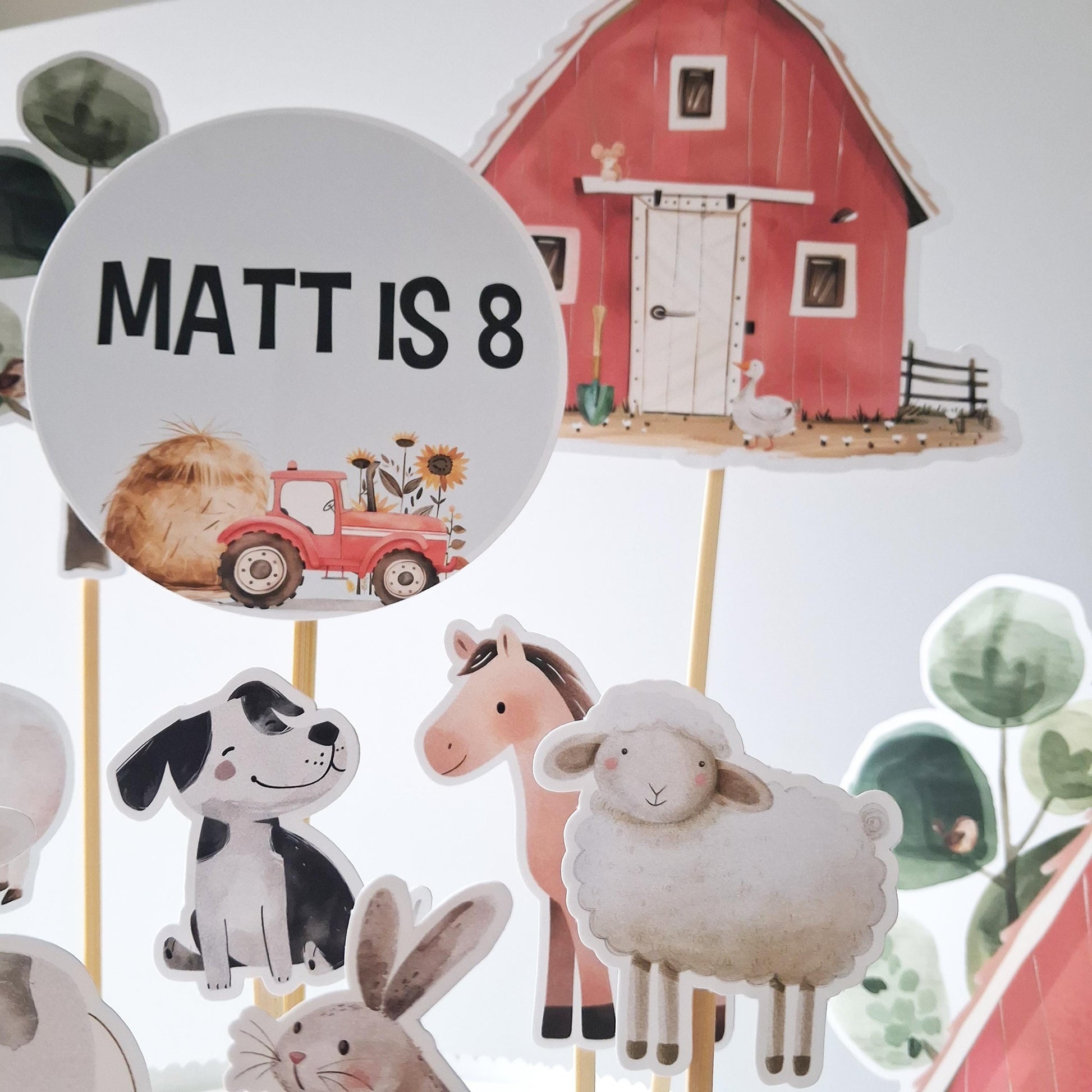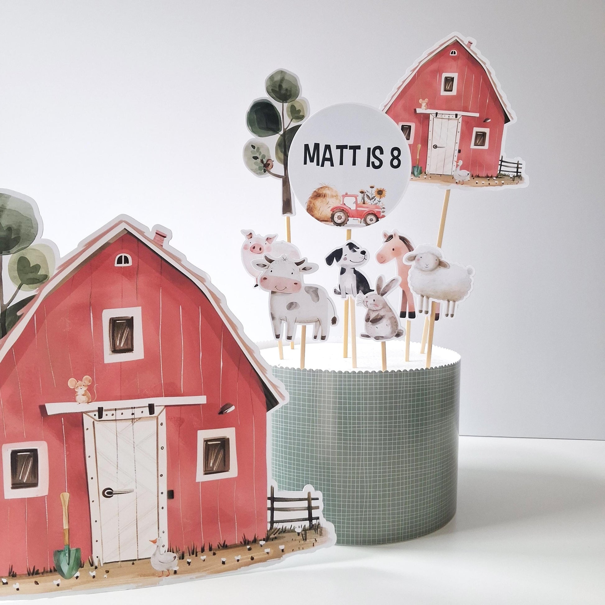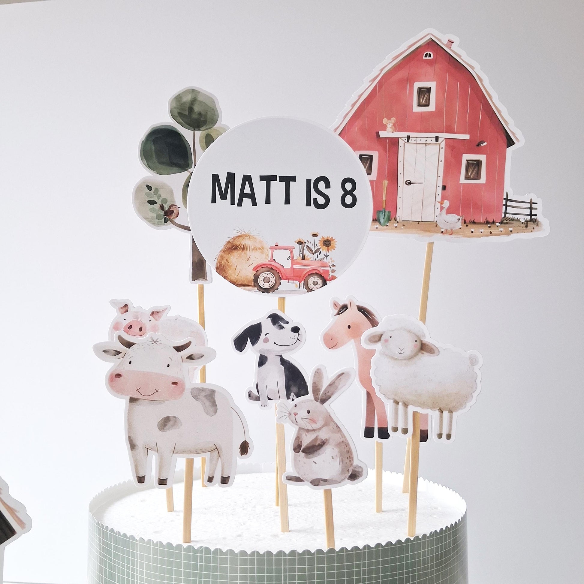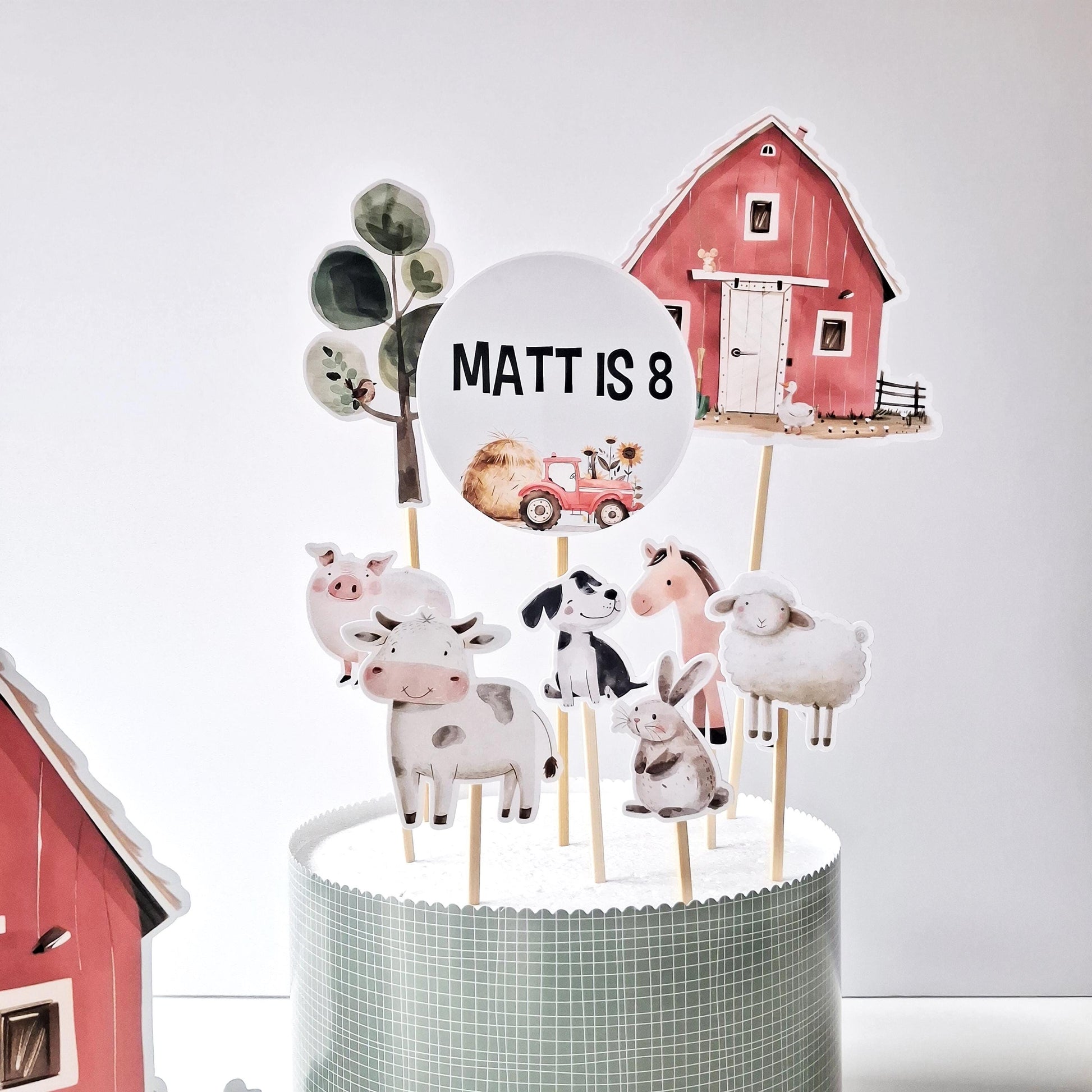Farmyard Cake Topper Set – Personalised Barn Animal Party Décor