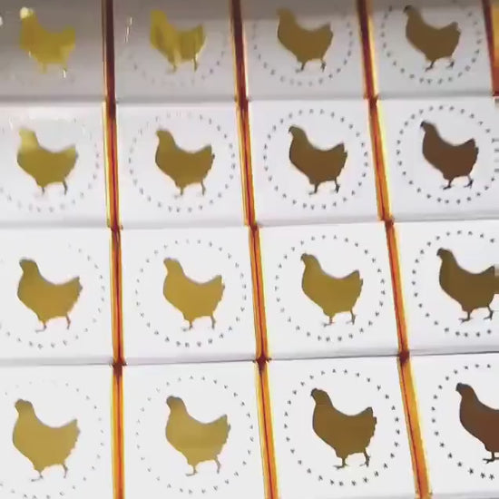Add a touch of sparkle to your celebration with these Elegant Golden Hen Do Chocolate Favours. Each square chocolate comes wrapped in gold foil and high-quality glossy paper, featuring a sophisticated golden hen design atop a smooth white background—perfect for a chic hen night or bridal celebration.