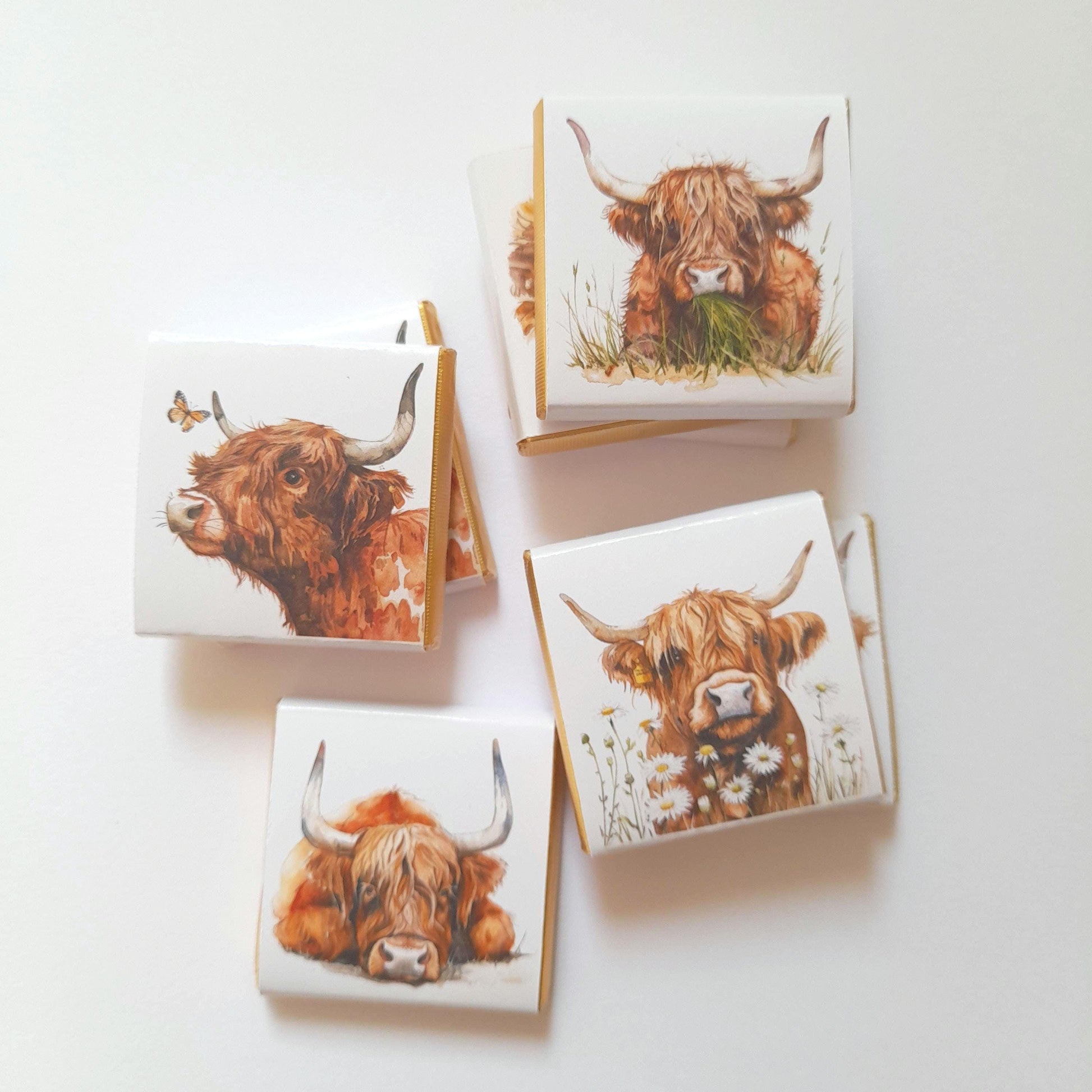 Personalised Highland Cow Chocolate Favours – Rustic Party Treats
