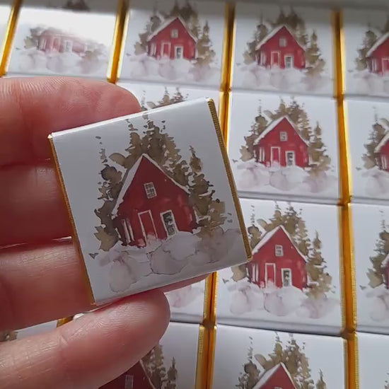 Bring a touch of winter woodland magic to your festive table with these personalised mini chocolates. Featuring a charming woodland scene design, each individually wrapped chocolate square (approximately 3 × 3 cm, 5 g) is perfect as stocking fillers, advent surprises, table treats or heartfelt guest favours.