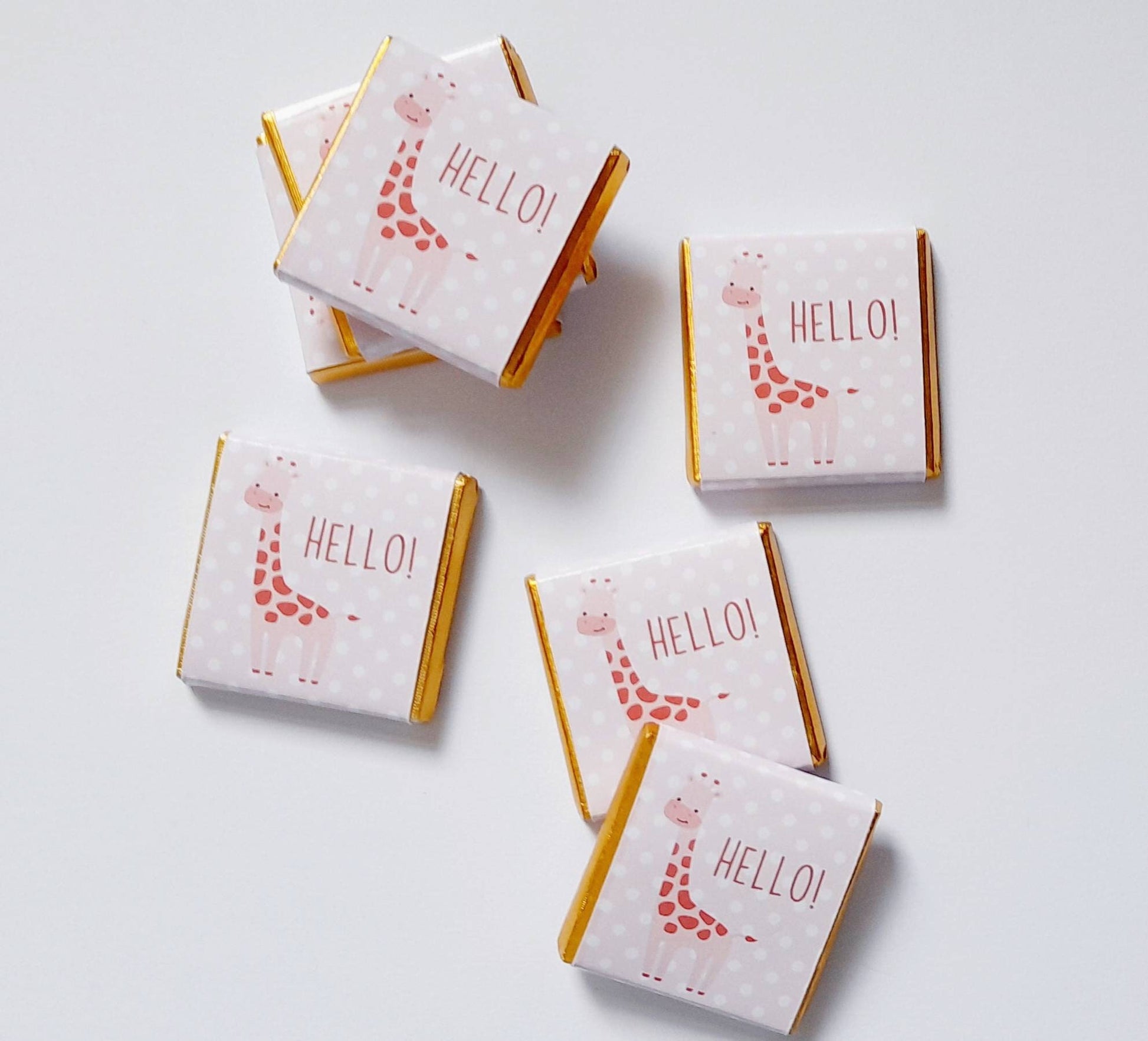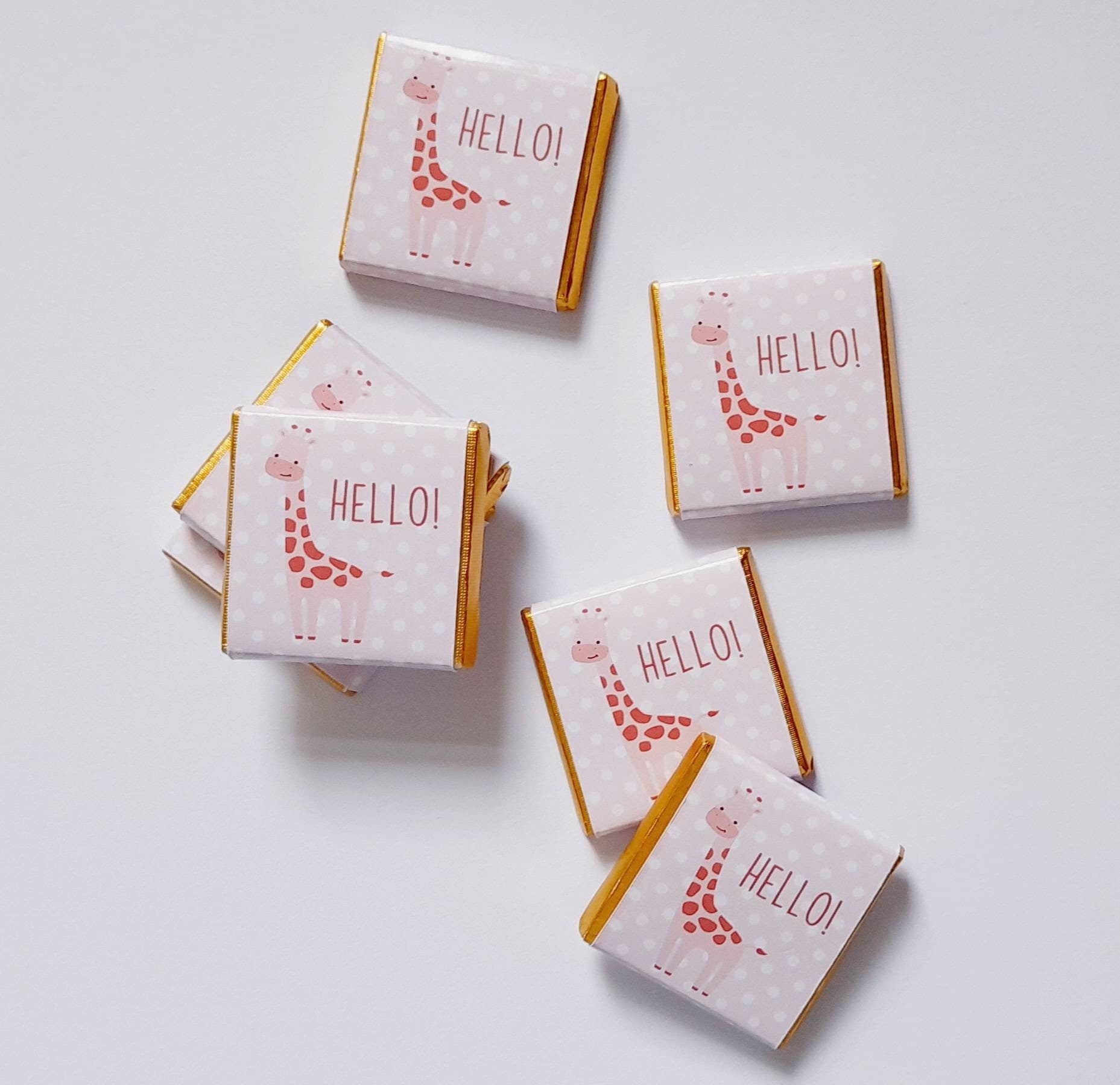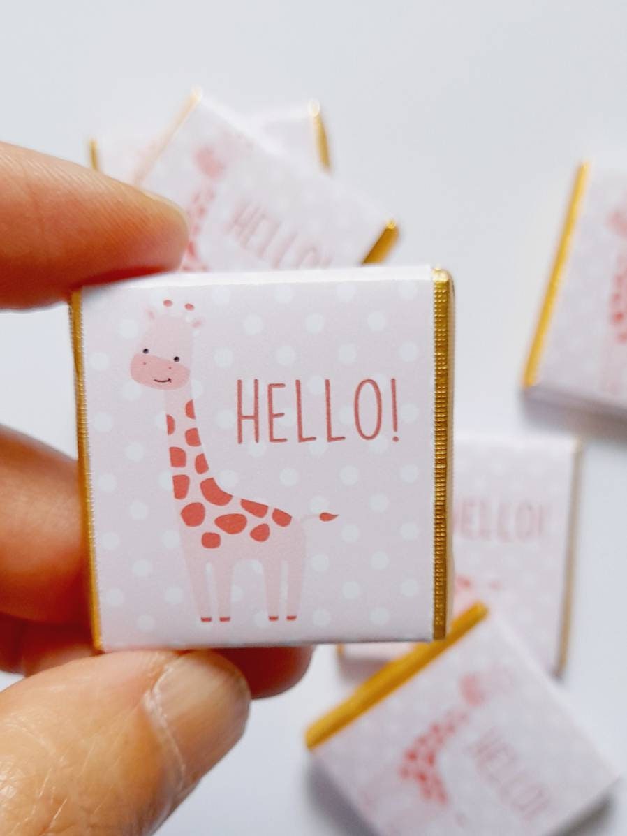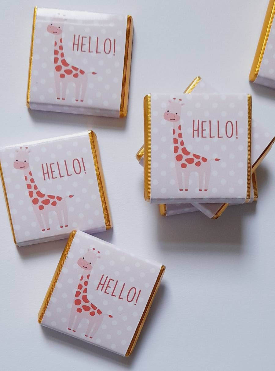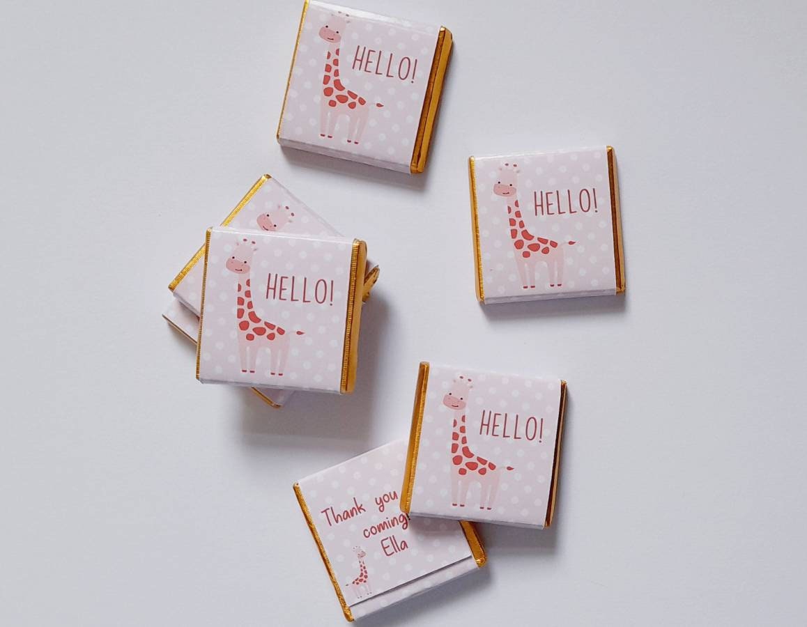 Personalised Pink Giraffe Chocolate Favours – Girl Baby Shower Treats (25 Pack)
