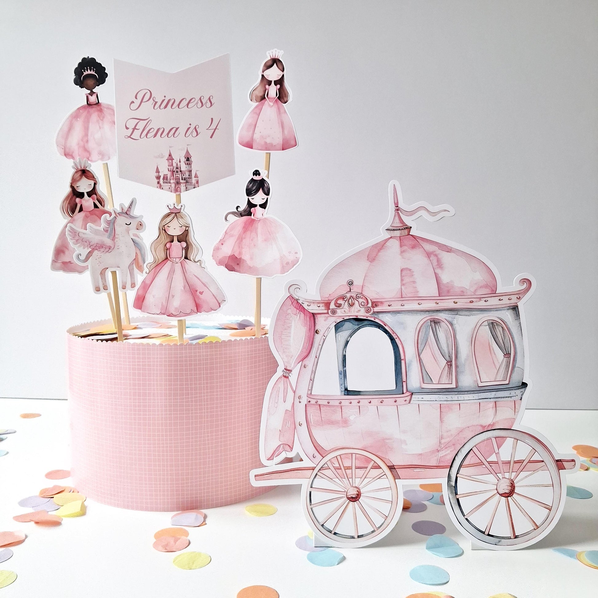 Princess Cake Topper Set – Carriage, Unicorn and Figurines