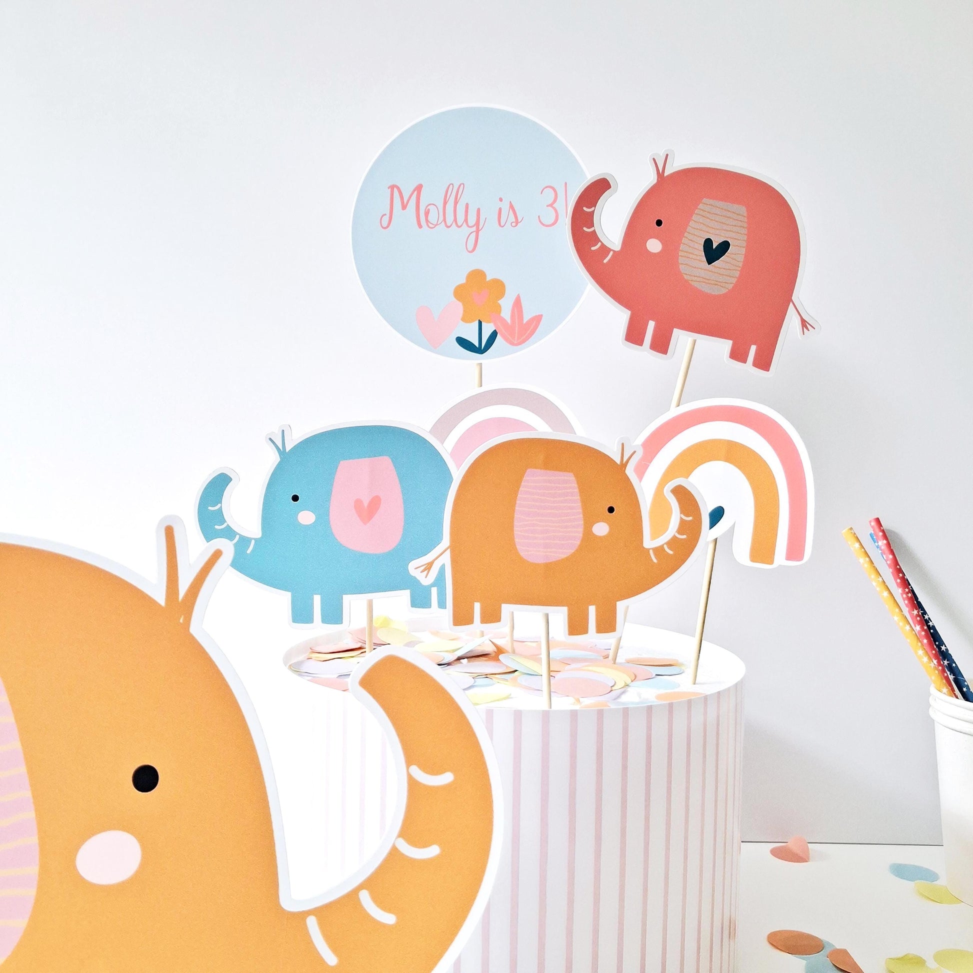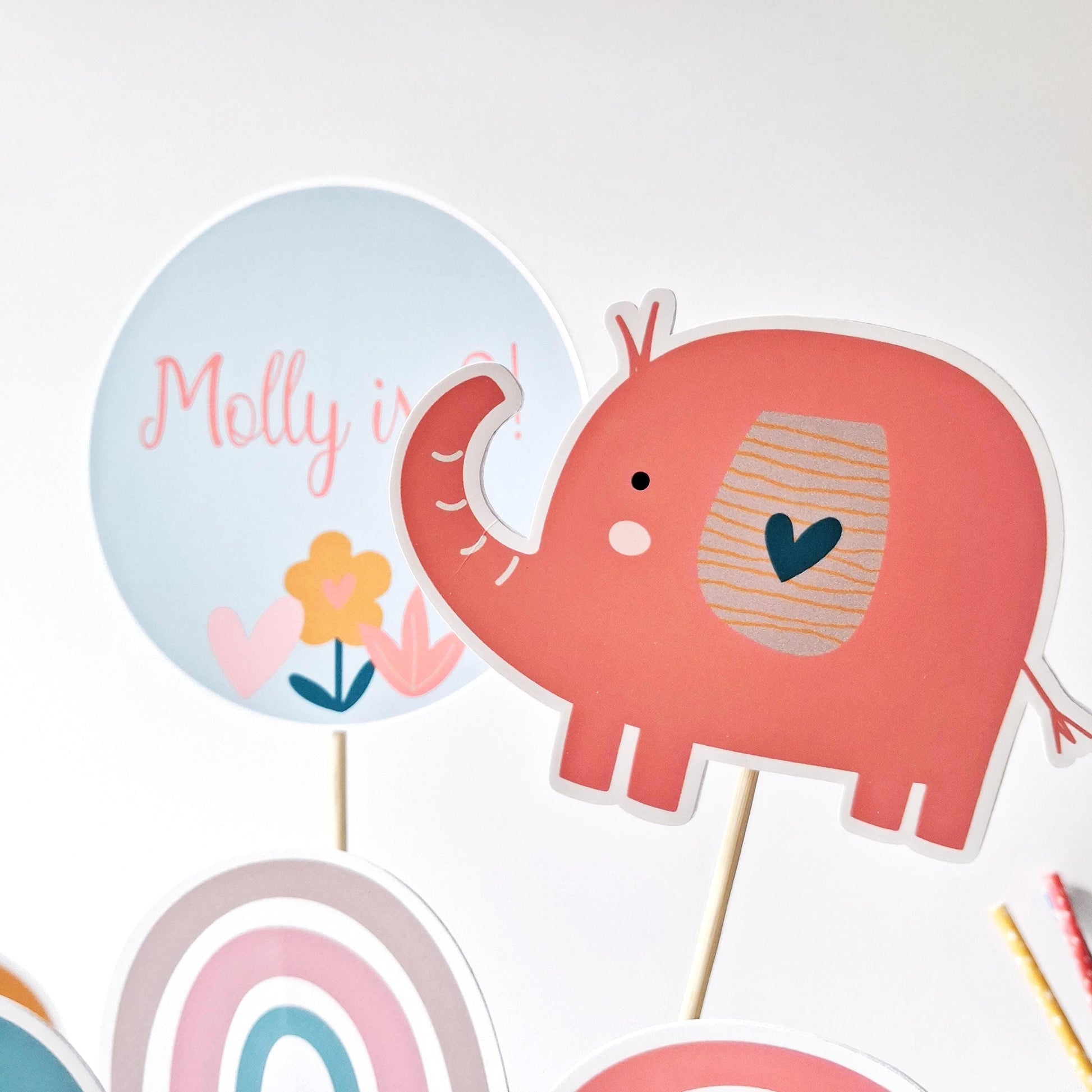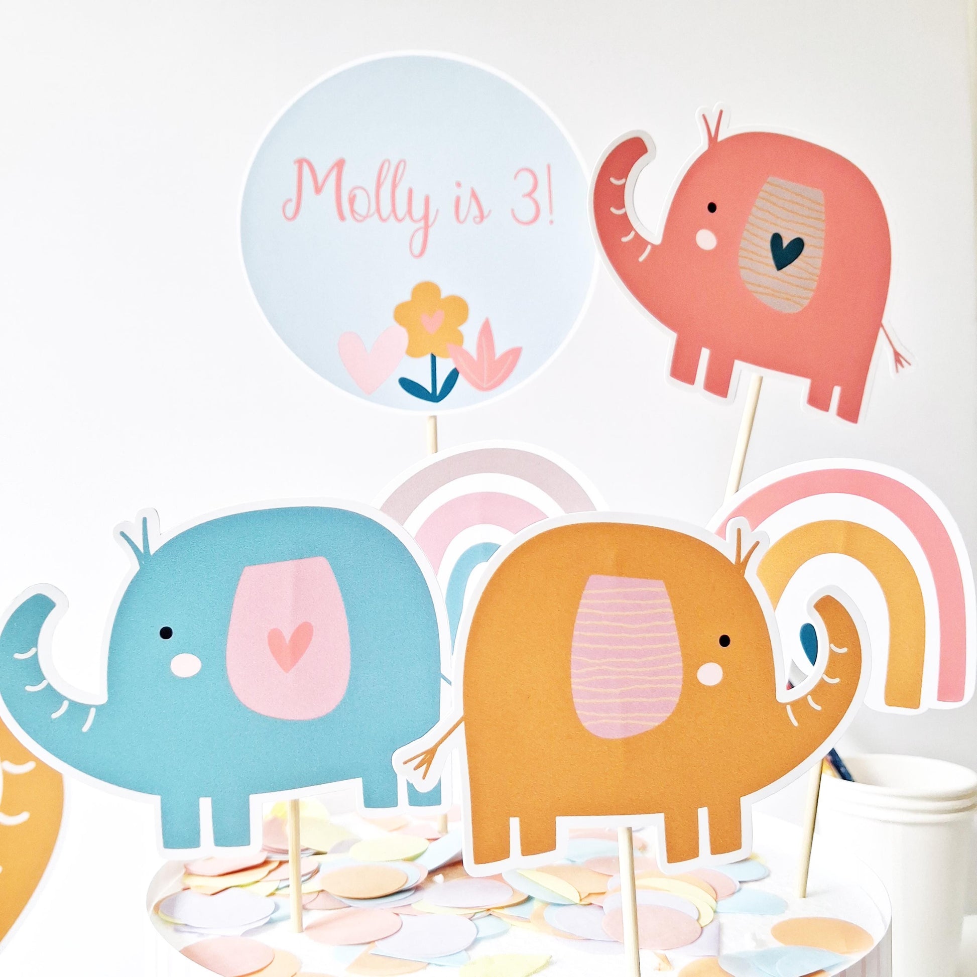 Add a whimsical splash of colour to your party with this Personalised Rainbow Elephant Cake Topper Set. Beautifully crafted in soft watercolour tones, the set includes five toppers showcasing adorable elephants and vibrant rainbows, along with a bespoke name-and-age topper—perfect for capturing milestone birthdays, baby showers, or christenings. A coordinating standalone elephant figure adds themed charm to your dessert or gift table.