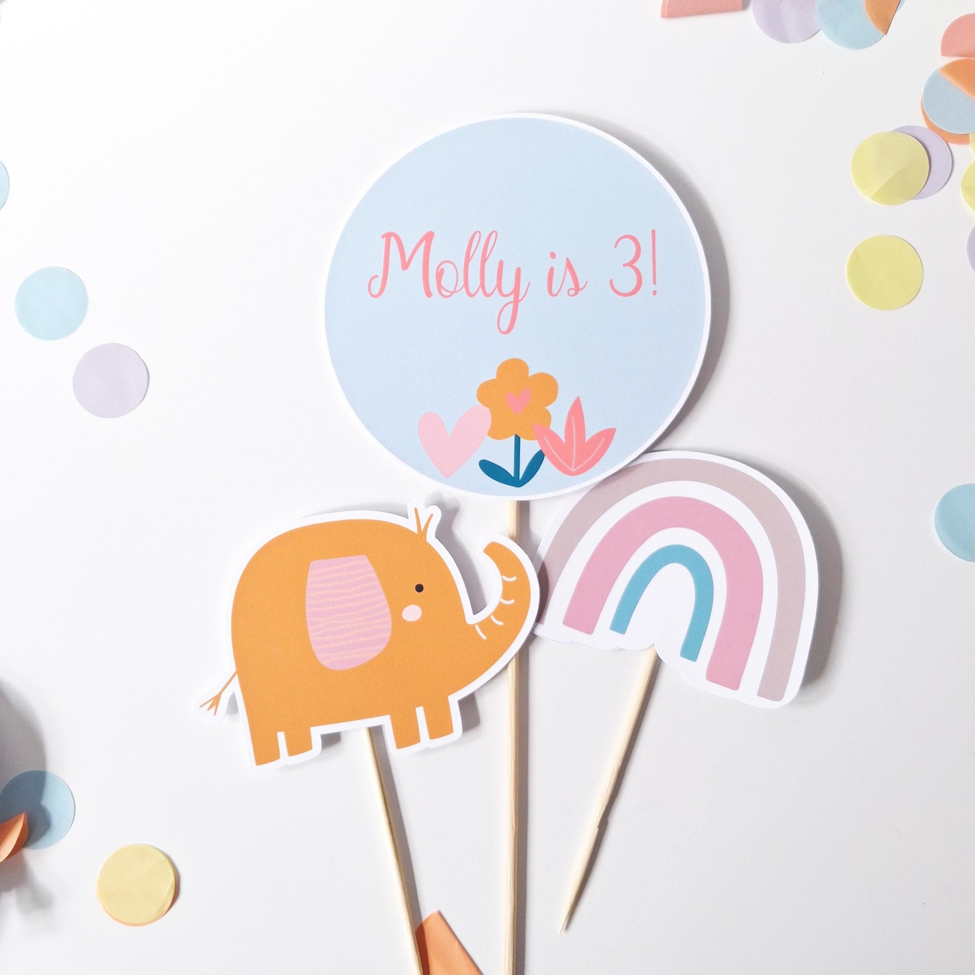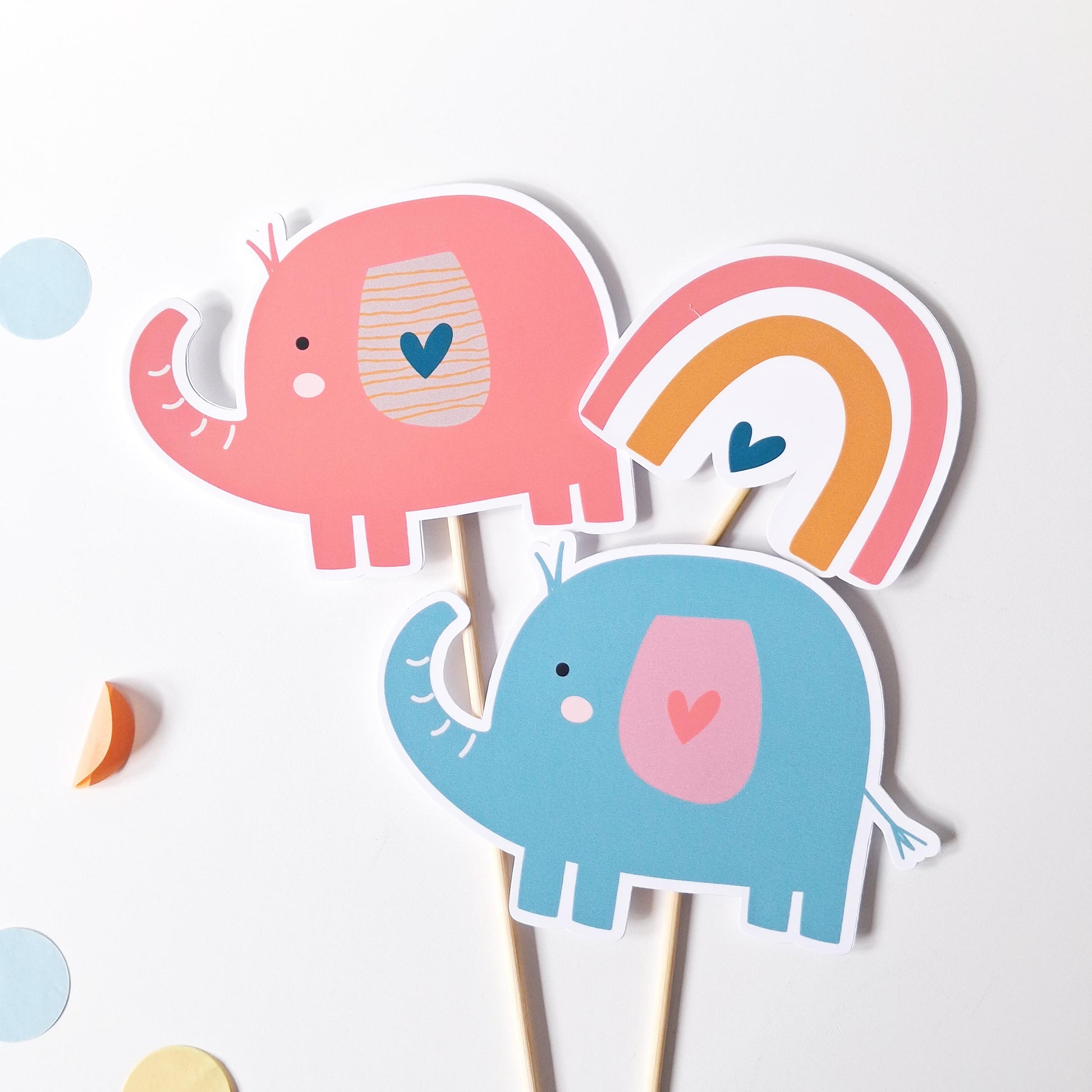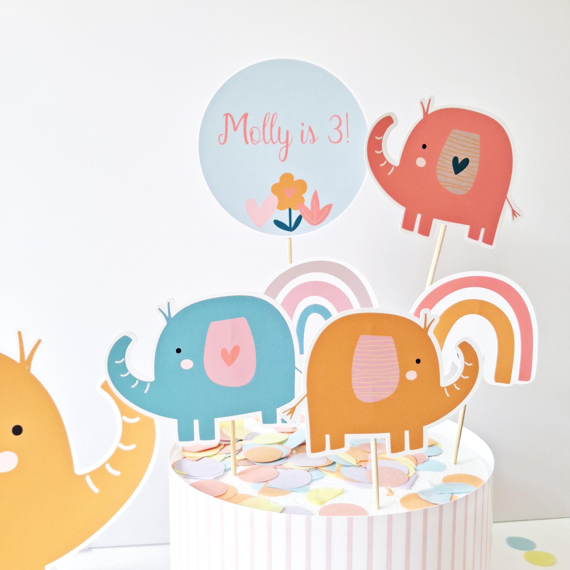 Add a whimsical splash of colour to your party with this Personalised Rainbow Elephant Cake Topper Set. Beautifully crafted in soft watercolour tones, the set includes five toppers showcasing adorable elephants and vibrant rainbows, along with a bespoke name-and-age topper—perfect for capturing milestone birthdays, baby showers, or christenings. A coordinating standalone elephant figure adds themed charm to your dessert or gift table.