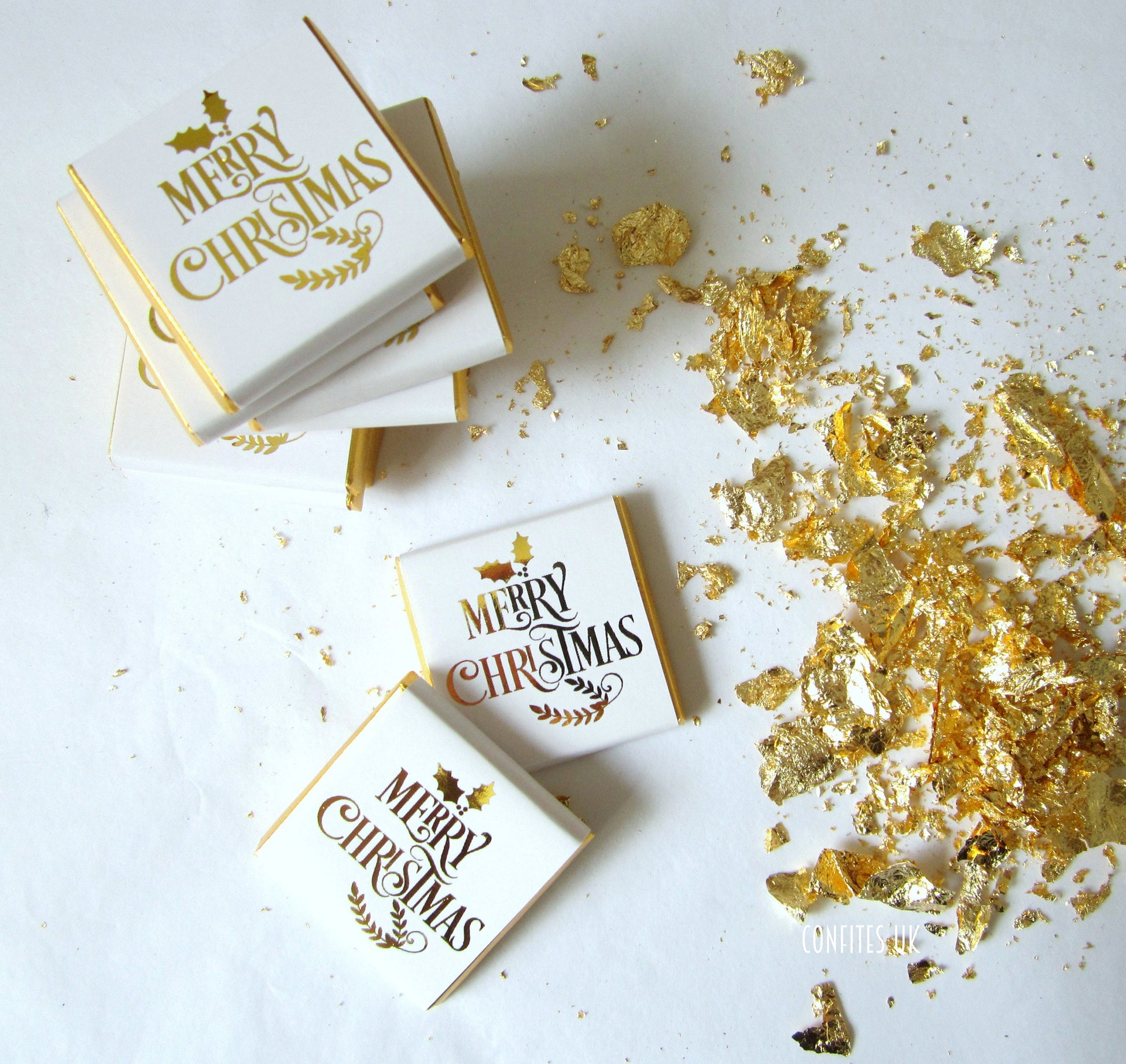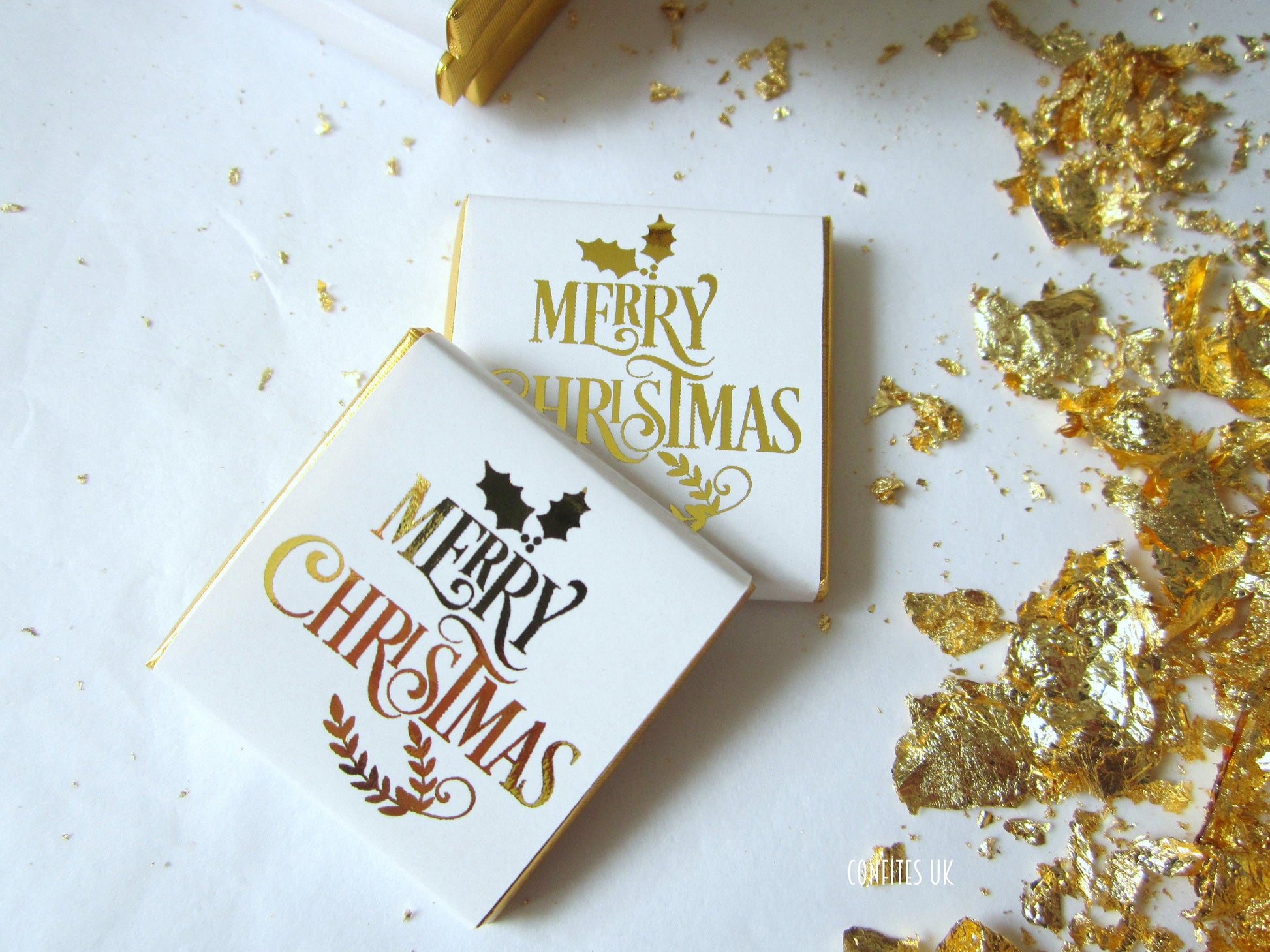 Personalised White and Gold “Merry Christmas” Chocolate Favours – Pack of 25